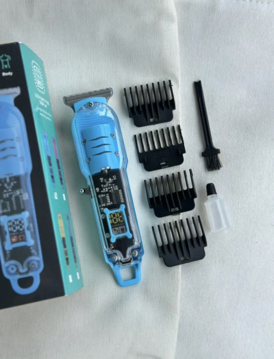 The product appears to be a professional hair trimmer with various features and accessories, suggesting it is designed for both personal and professional use.